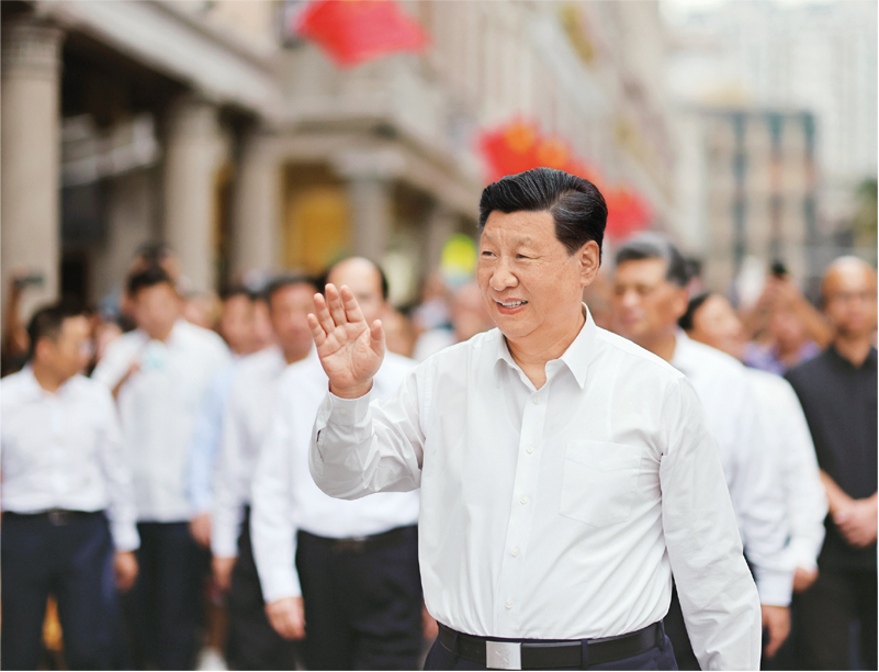 2020年10月12日至13日,中共中央总书记、国家主席、中央军委主席习近平在广东考察。这是13日下午,习近平在汕头市小公园开埠区步行察看街区风貌时,向当地群众和游客挥手致意。 新华社记者 王晔/摄