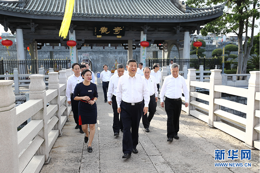 习近平来到二层檐廊,举目远眺,韩江水阔,长桥卧波。在听取广济楼历史和古城修复保护情况汇报后,习近平强调,包括广济桥、广济楼在内的潮州古城比较完好地保留了下来,实属难得,弥足珍贵。在改造老城、开发新城过程中,要保护好城市历史文化遗存,延续城市文脉,使历史和当代相得益彰。