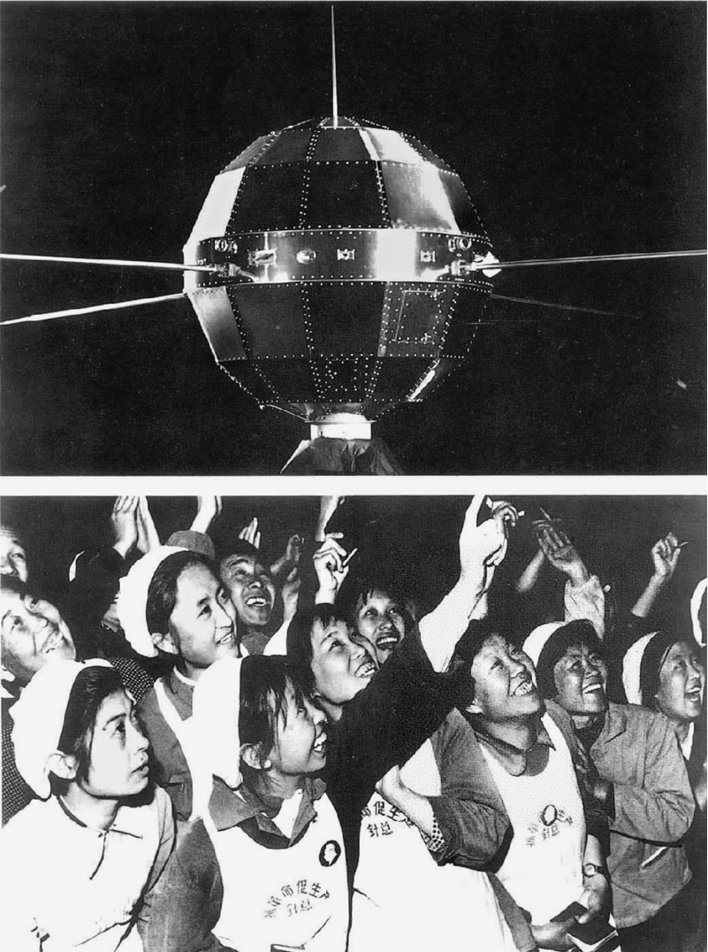 1970年4月24日,我国第一颗人造地球卫星“东方红一号”成功发射,航天事业从无到有、从小到大、从弱到强,孕育了“两弹一星”精神、载人航天精神。上图为“东方红一号”;下图为人们争相眺望“东方红一号”通过北京上空。 新华社发