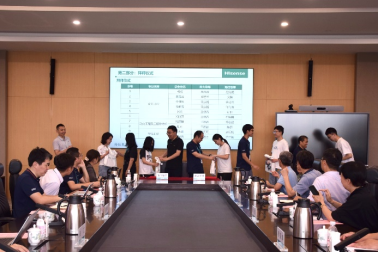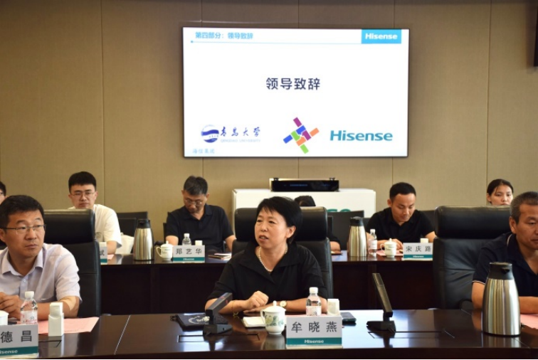 7月6日上午,海外直播 与海信空调有限公司产学研合作洽谈会暨研究生合作导师聘任仪式在海信研发中心举行,海外直播 党委书记牟晓燕、院长李延辉、副院长王德昌、院长助理蒋荣超、学工办主任孙万超、工业设计系主任赵博、能源与动力工程系主任马永志、相关校内导师和研究生代表,海信空调有限公司副总裁别清峰、研发中心副主任李永彬、产品平台研发部总经理张江、预研技术部副总经理张旭、人力资源部副总经理柴雪莲以及相关合作导师出席本次活动。